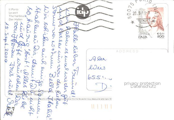 old postcard Ischia Isola Verde il porto der Hafen Schiffe postalisch gelaufen Erhaltung siehe scans
