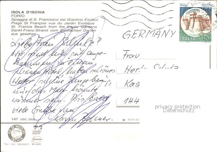 old postcard Ischia isola verde spiaggia di S. Francesco dal Giardino Esotico postalisch gelaufen Erhaltung siehe scans