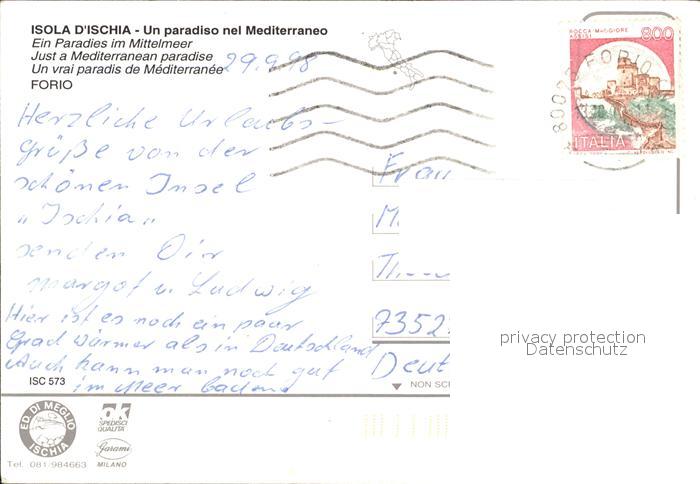 old postcard Ischia Mittelmeer Gr?ne Insel postalisch gelaufen Erhaltung siehe scans