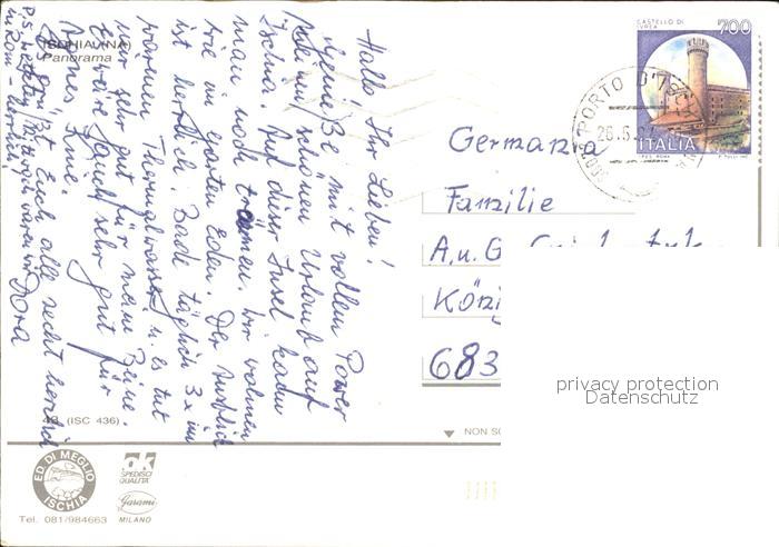 old postcard Ischia Panorama Insel Schloss Blumen postalisch gelaufen Erhaltung siehe scans