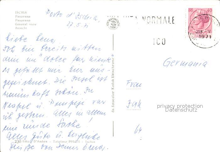 old postcard Ischia Panorama Ortsansicht postalisch gelaufen Erhaltung siehe scans