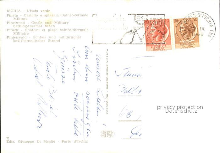 old postcard Ischia Pinienwald Schloss postalisch gelaufen Erhaltung siehe scans