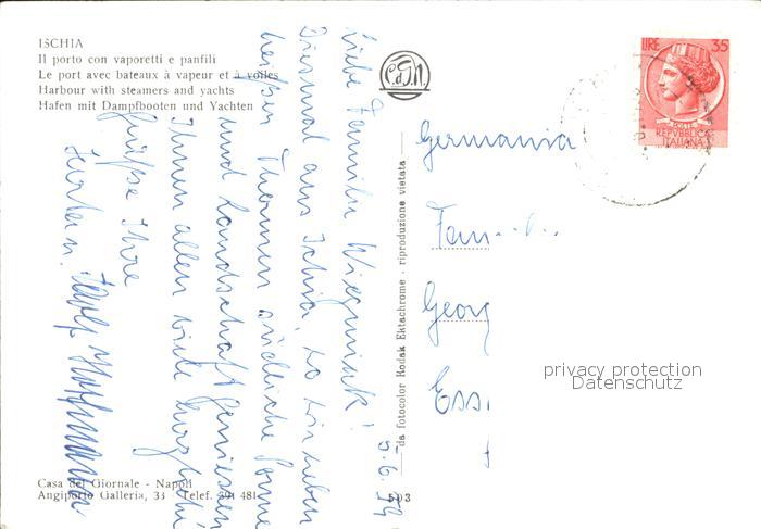 old postcard Ischia Porto con vaporetti e panfili postalisch gelaufen Erhaltung siehe scans