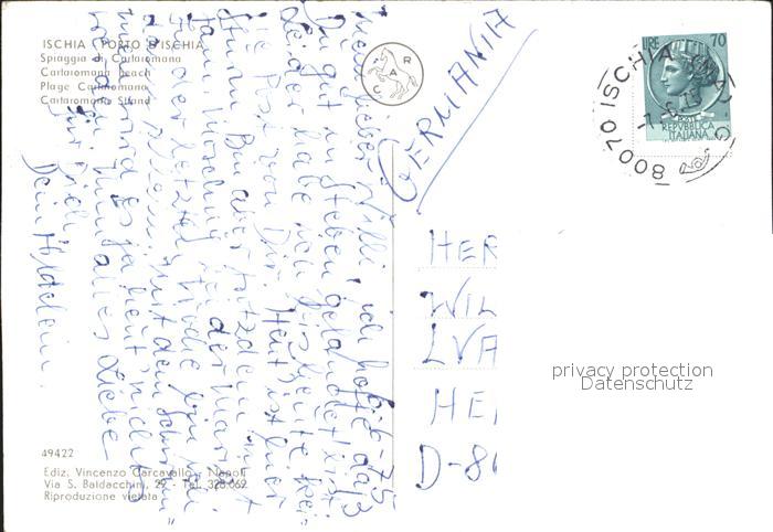 old postcard Ischia Porto d Ischia Spiaggia die Cartaromana postalisch gelaufen Erhaltung siehe scans