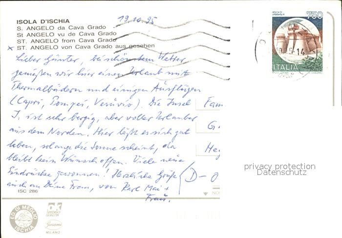 old postcard Ischia Sant Angelo Cava Grado postalisch gelaufen Erhaltung siehe scans