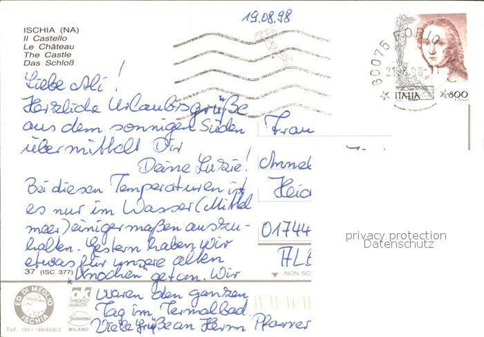 old postcard Ischia Schloss postalisch gelaufen Erhaltung siehe scans