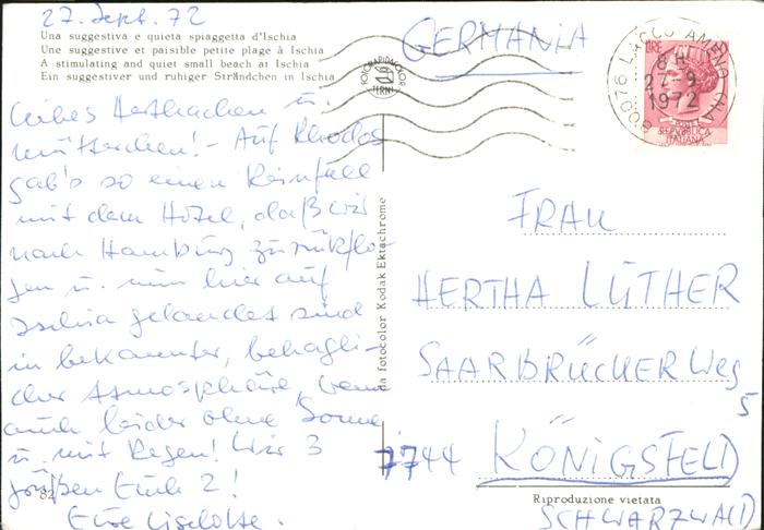 old postcard Ischia Una suggestiva e quieta spiaggetta Strand postalisch gelaufen gute Erhaltung