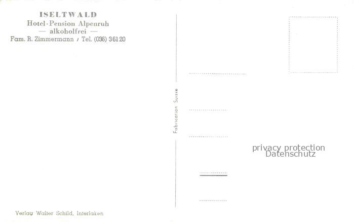 34144825 Iseltwald Brienzersee Interlaken BE Hotel Pension Alpenruh postalisch nicht gelaufen Erhaltung siehe scans [FriedD77] KatCode: 11470060175266