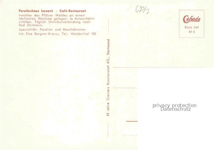 74006909 Isenach BAD DueRKHEIM Rheinland-Pfalz Forellenhaus Cafe Restaurant postalisch nicht gelaufen Erhaltung siehe scans [WerneD78] KatCode: 11110007332002
