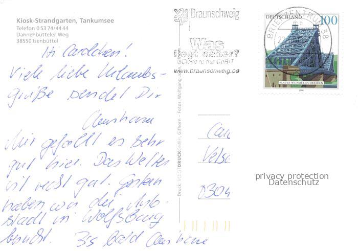 74095580 alte Postkarte Isenbuettel Gifhorn Niedersachsen Kiosk Strandgarten Tankumsee postalisch gelaufen Erhaltung siehe scans [WerneD78] KatCode: 11110003151013