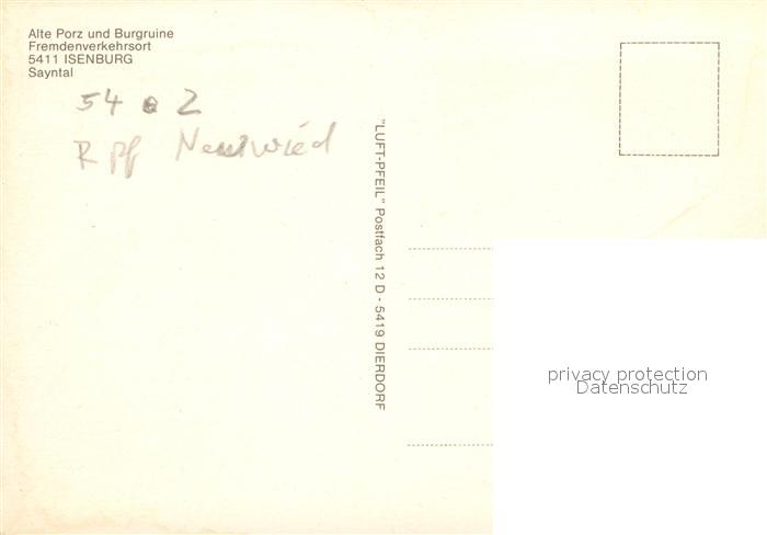 72930797 Isenburg Westerwald Alte Porz und Burgruine Sayntal postalisch nicht gelaufen Erhaltung siehe scans [LiesaD40] KatCode: 11110007138031
