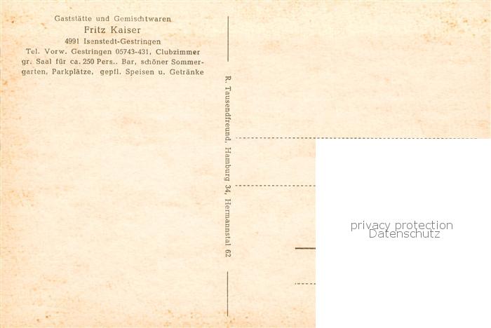 73830718 Isenstedt Luebbecke Westfalen Gaststaette Fritz Kaiser Gastraeume Bar postalisch nicht gelaufen Erhaltung siehe scans [FriedD77] KatCode: 11110005770008