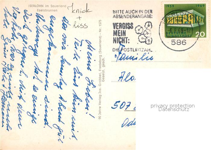 72993828 alte Postkarte Iserlohn Eselsbrunnen postalisch gelaufen Erhaltung siehe scans [AndreD76] KatCode: 11110005962024