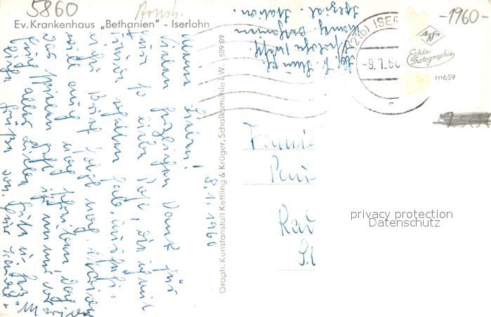 73700118 alte Postkarte Iserlohn Ev.Krankenhaus Bethanien postalisch gelaufen Erhaltung siehe scans [LiesaD40] KatCode: 11110005962024