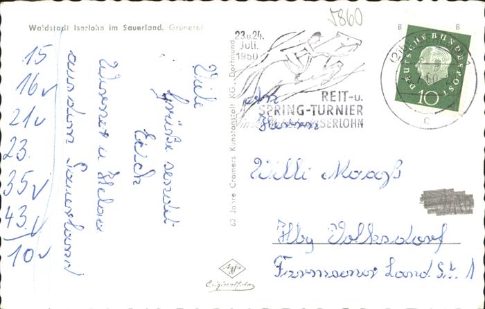 41274796 ISERLOHN NRW Gruener Tal postalisch gelaufen gute Erhaltung Alte Ansichtskarte Postkarte alte Postkarte Stef Katcode 11110005962024