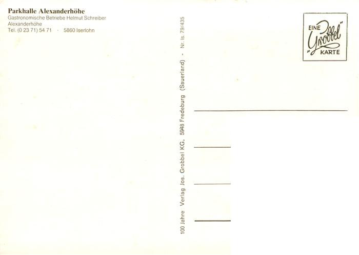 73884400 Iserlohn Parkhalle Alexanderhoehe Diskothek Scherenbahnen Grosser Festsaal Restaurant Hacienda postalisch nicht gelaufen Erhaltung siehe scans [FriedD77] KatCode: 11110005962024