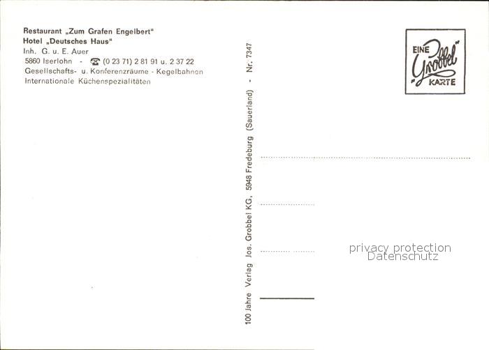 72527881 Iserlohn Restaurant Zum Grafen Engelbert postalisch nicht gelaufen Erhaltung siehe scans KatCode: 11110005962024