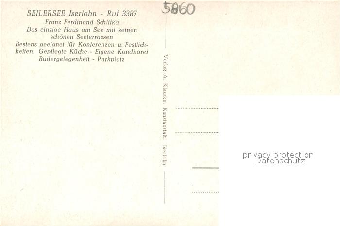 73710037 Iserlohn Seilersee Haus am See m. Seeterrasse postalisch nicht gelaufen Erhaltung siehe scans [LiesaD40] KatCode: 11110005962024