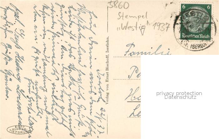 73700128 alte Postkarte Iserlohn Waldhotel Franzosenhohl postalisch gelaufen Erhaltung siehe scans [LiesaD40] KatCode: 11110005962024