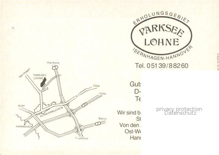 73754540 Isernhagen Erholungsgebiet Parksee Lohne postalisch nicht gelaufen Werbekarte (keine Postkarte) Erhaltung siehe scans [FriedD77] KatCode: 11110003241008