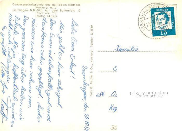 73045866 alte Postkarte Isernhagen Genossenschaftsschule des Raiffeisenverbandes Hannover postalisch gelaufen Erhaltung siehe scans [WerneD78] KatCode: 11110003241008