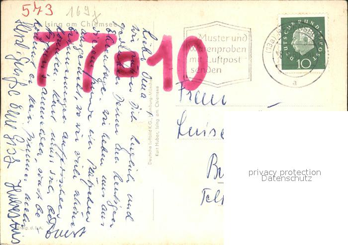 72585518 alte Postkarte Ising Chiemsee Panorama mit Kirche und See postalisch gelaufen Erhaltung siehe scans [AndreD76] KatCode: 11110009189114