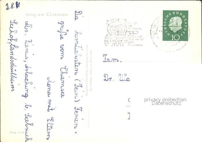 72141562 alte Postkarte Ising Chiemsee Panorama postalisch gelaufen Erhaltung siehe scans KatCode: 11110009189114