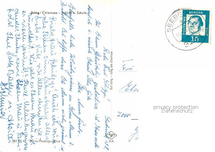 72811485 alte Postkarte Ising Chiemsee Schloss und Schule postalisch gelaufen Erhaltung siehe scans [FriedD77] KatCode: 11110009189114