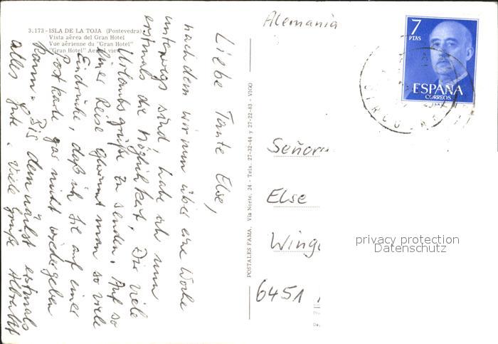 old postcard Isla de La Toja Gran Hotel Fliegeraufnahme postalisch gelaufen Erhaltung siehe scans