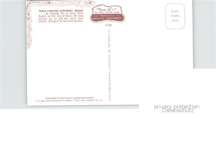 72484540 Isle of Kauai Torch Lighting Ceremony postalisch nicht gelaufen Erhaltung siehe scans KatCode: 14140130000000