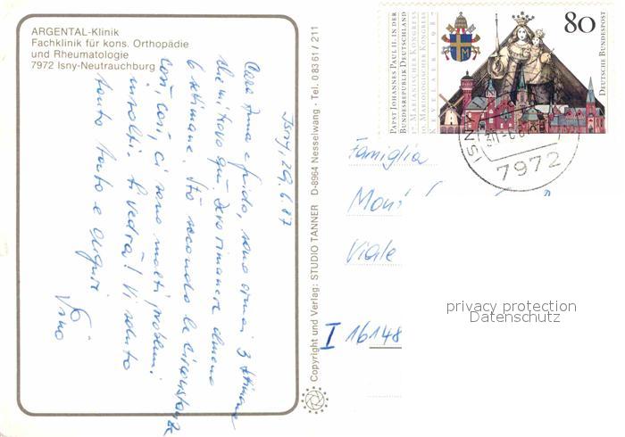 72683644 alte Postkarte Isny Allgaeu Argental Klinik postalisch gelaufen Erhaltung siehe scans [LiesaD40] KatCode: 11110008436049