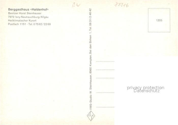 73648569 Isny Allgaeu Berggasthaus Haldenhof Terrasse Gaststube postalisch nicht gelaufen Erhaltung siehe scans [WerneD78] KatCode: 11110008436049