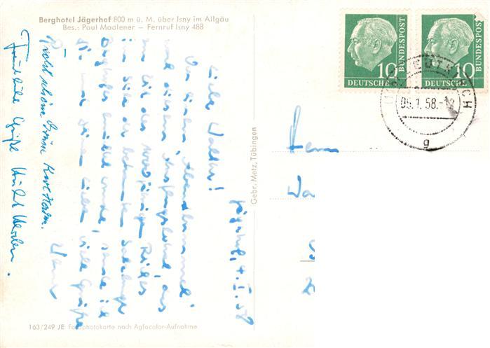 73886003 alte Postkarte Isny Allgaeu Berghotel Jaegerhof postalisch gelaufen Erhaltung siehe scans [FriedD77] KatCode: 11110008436049