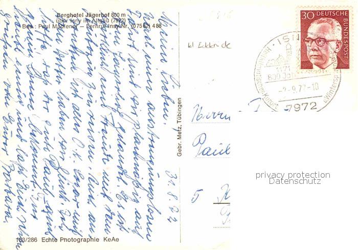 72746268 alte Postkarte Isny Allgaeu Berghotel Jaegerhof postalisch gelaufen Erhaltung siehe scans [LiesaD40] KatCode: 11110008436049