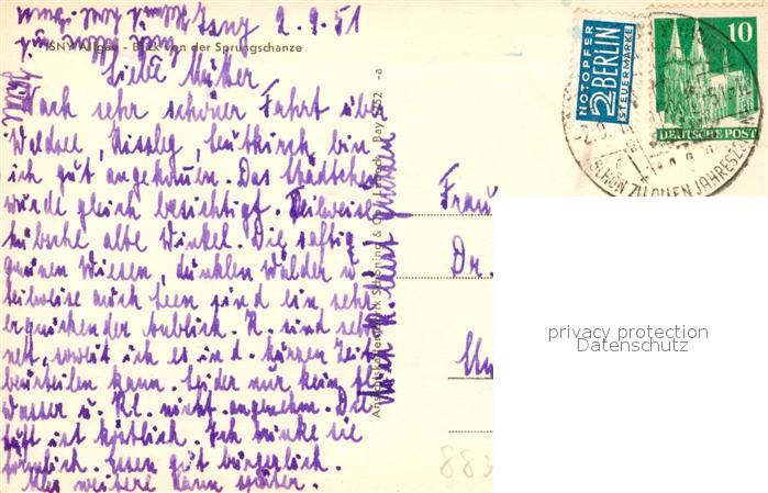 73596921 alte Postkarte Isny Allgaeu Blick von der Sprungschanze Panorama postalisch gelaufen Erhaltung siehe scans [KathaD81] KatCode: 11110008436049