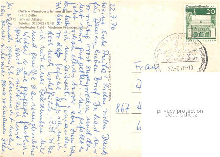 72849533 alte Postkarte Isny Allgaeu Cafe Pension Immergruen postalisch gelaufen Erhaltung siehe scans [KathaD81] KatCode: 11110008436049