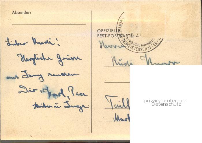 32158978 alte Postkarte Isny Allgaeu Deutsche Skimeisterschaften postalisch gelaufen Erhaltung siehe scans KatCode: 11110008436049