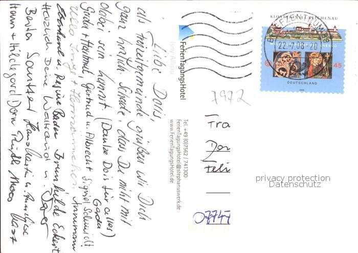 71936281 alte Postkarte Isny Allgaeu Ferien Tagungs Hotel postalisch gelaufen Erhaltung siehe scans KatCode: 11110008436049