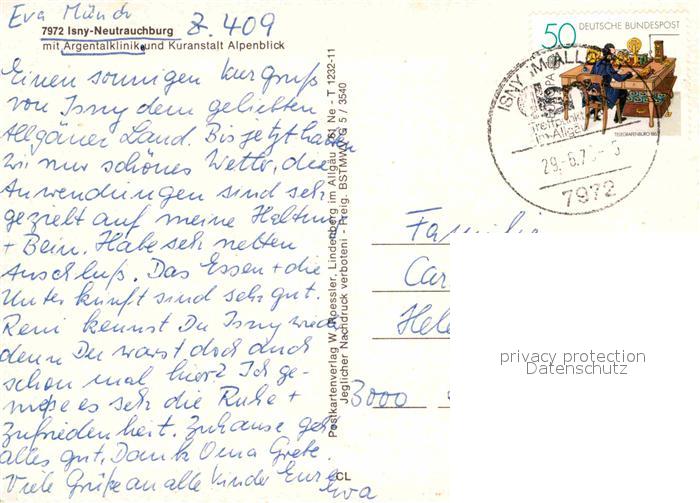 72784707 alte Postkarte Isny Allgaeu Fliegeraufnahme Neutrauchburg mit Argenklinik postalisch gelaufen Erhaltung siehe scans [LiesaD40] KatCode: 11110008436049