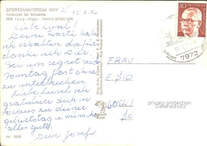 72572555 alte Postkarte Isny Allgaeu Fliegeraufnahme Sportsanatorium postalisch gelaufen Erhaltung siehe scans [LiesaD40] KatCode: 11110008436049