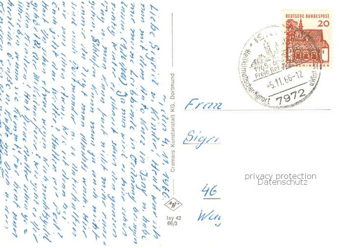 73784662 alte Postkarte Isny Allgaeu Gesamtansicht – Rathaus – Grabenweiher – Marktplatz postalisch gelaufen Erhaltung siehe scans [LiesaD40] KatCode: 11110008436049