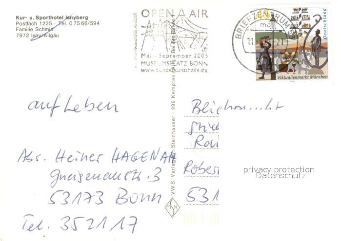 73614851 alte Postkarte Isny Allgaeu Kur und Sporthotel Isnyberg postalisch gelaufen Erhaltung siehe scans [WerneD78] KatCode: 11110008436049
