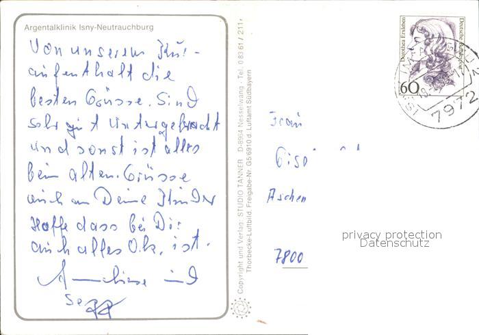 72609718 alte Postkarte Isny Allgaeu Neutrauchburg Fliegeraufnahme Argentalklinik postalisch gelaufen Erhaltung siehe scans [LiesaD40] KatCode: 11110008436049