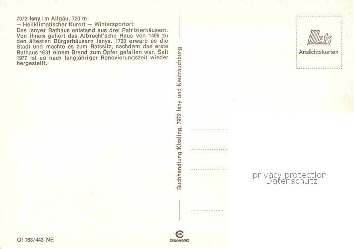 72791287 Isny Allgaeu Rathaus 3 Patrizierhaeuser postalisch nicht gelaufen Erhaltung siehe scans [LiesaD40] KatCode: 11110008436049