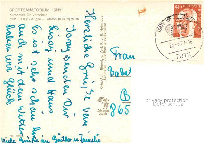 72916402 alte Postkarte Isny Allgaeu Sportsanatorium Turnhalle Schwimmbad postalisch gelaufen Erhaltung siehe scans [LiesaD40] KatCode: 11110008436049