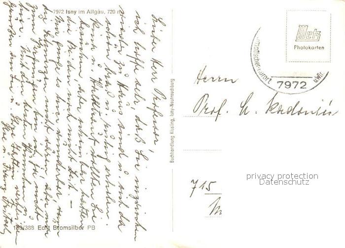 73164183 alte Postkarte Isny Allgaeu Wassertorturm Diebsturm Stadtgraben Kirche Blaserturm Hafendeckel Turm Espantor Bromsilber postalisch gelaufen Erhaltung siehe scans [FriedD77] KatCode: 11110008436049