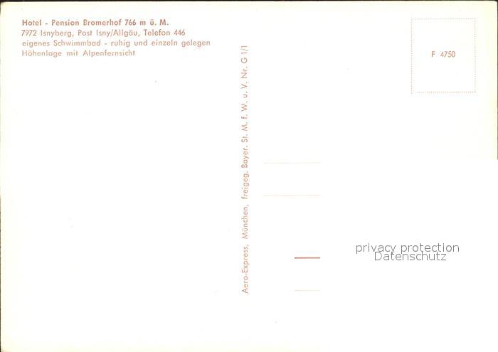72205672 Isnyberg Hotel Pension Bromerhof Fliegeraufnahme postalisch nicht gelaufen Erhaltung siehe scans KatCode: 11110008436094