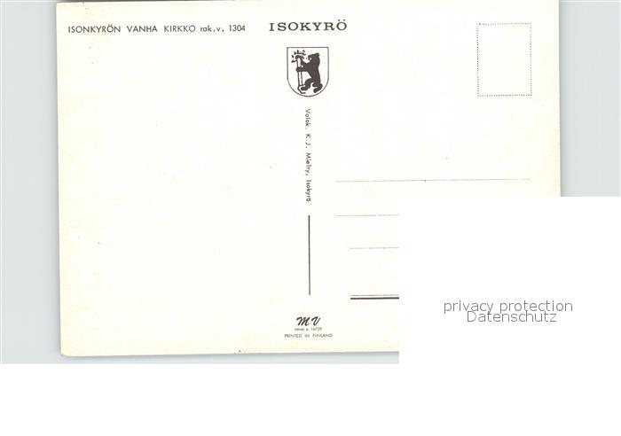 Isokyroe Isonkyroen Vanha Kirkko postalisch nicht gelaufen Erhaltung siehe scans [FriedD77 kt114box]
