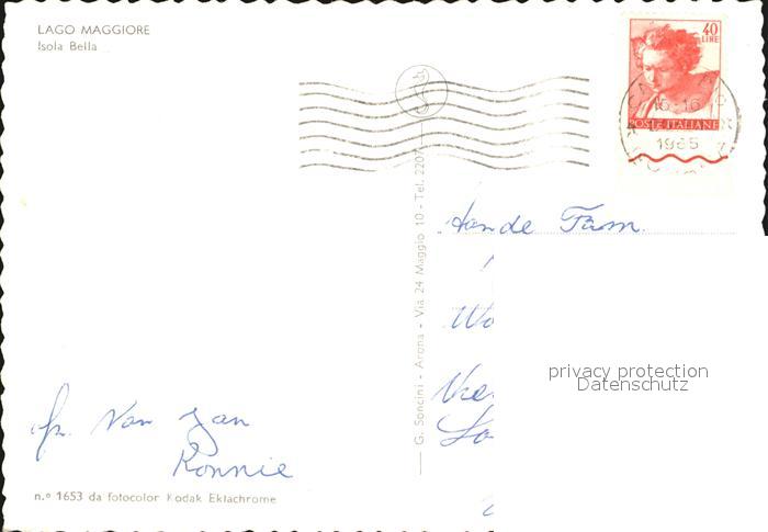 old postcard Isola Bella Lago Maggiore postalisch gelaufen Erhaltung siehe scans