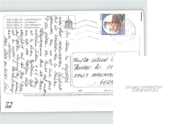 old postcard Isola Bella Lago Maggiore postalisch gelaufen Erhaltung siehe scans